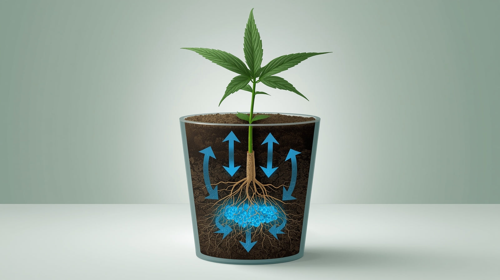 HolidayGrow speichert überschüssiges Wasser und Nährstoffe im Substrat und gibt sie gleichmäßig an die Pflanzen ab. Die Wurzeln wachsen direkt in das Gel hinein und versorgen sich selbst – genau nach Bedarf.